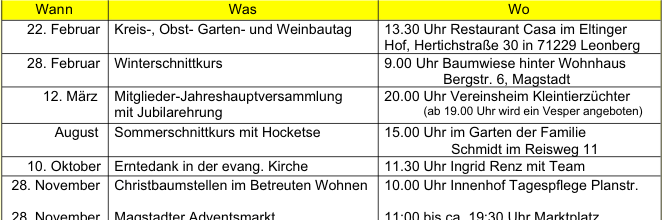 OGV Magstadt Unser Verein Termine Vereinsleben Gartentipps